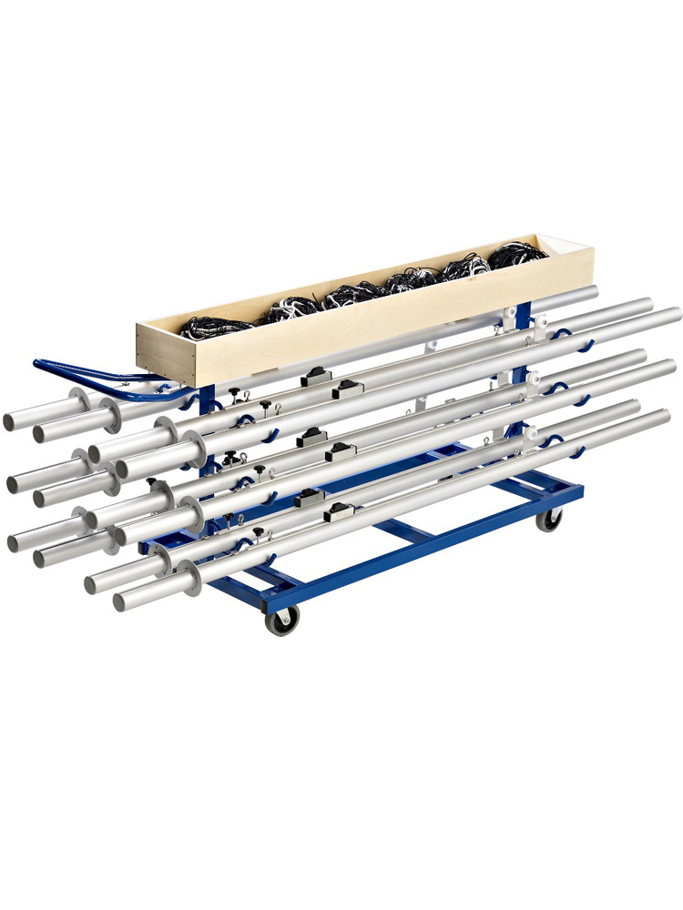 Sterkur og vandaður áhaldavagn fyrir allt að 6 sett af krakkablakstoðum.