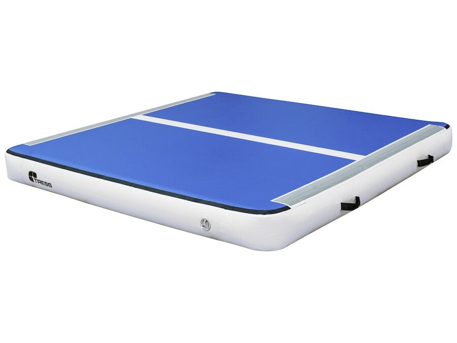 Uppblásna dýnan býður upp á marga möguleika. Hún er fullkomin bæði fyrir rólegan leik og leiki með mikilli virkni. Hún gefur smá hopp svo barn geti hoppað á henni á meðan önnur börn geta setið kyrr á henni án þess að finna fyrir hoppinu. 200 x 200 x 20 cm ATH. Afhent án dælu!
