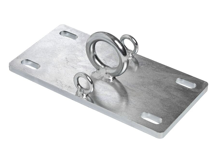 Tvöföld augnfesting úr rafgalvaniseruðu stáli til að festa afdreganet og skjái. Sterk augnfesting úr rafgalvaniseruðu stáli með 4 götum fyrir fasta festingu á vegg eða súlu. Festingin er notuð til að festa afdreganet og svipaða skjái í stærri sölum þar sem netið getur orðið fyrir miklu álagi eða togkrafti. Festingarplatan mælist 200 x 100 x 8 mm. Stóra augað er 25 mm að innra þvermáli en tvö minni augun eru 17 mm að innra þvermáli. Festingin fylgir án festingarskrúfa og óunninna tappa.
