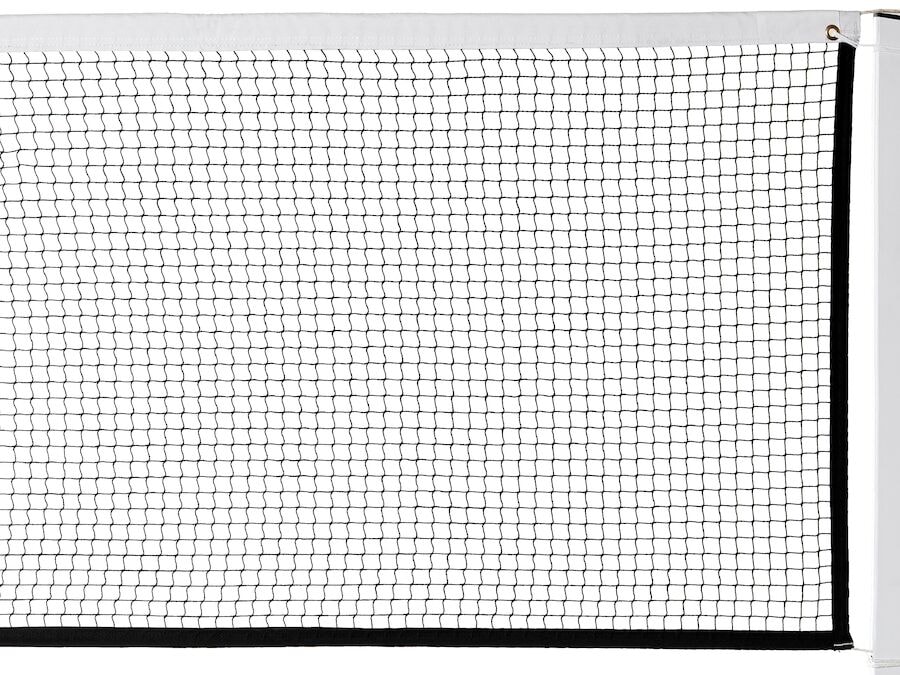 Þunnt badmintonnet úr svörtu nylon með hvítum kant. Netið er með styrkingar- og spennusnúrum í báðum endum, þannig að það er hægt að festa það á allar gerðir undirstöðu án netgrópa. Badmintonnetið er einnig útbúið með 3 Velcro-ólum í hvorum enda, þannig að það er hægt að herða það alveg við netstöngina/stuðninginn. Lengd nets: 6,06 metrar Hæð nets: 80 cm Vírlengd: 8 metrar