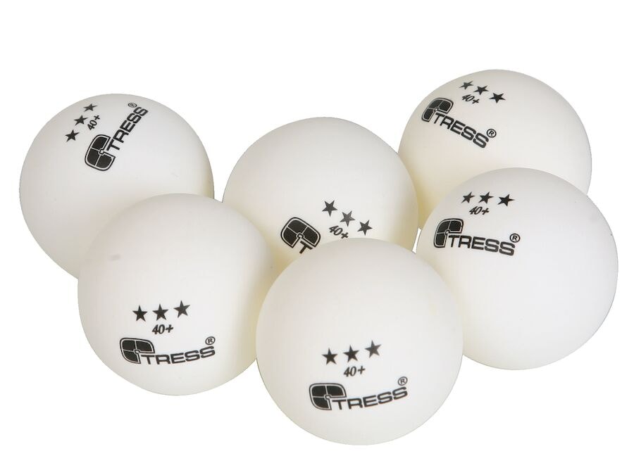 TRESS Platinum 40+ borðtennisbolti er nýr og einstaklega góður sellulóíðlaus bolti í 3 stjörnu gæðum. Þessi plastborðtennisbolti er hægt að nota bæði í skóla og á mótum. Kemur í pakka með 6 boltum.