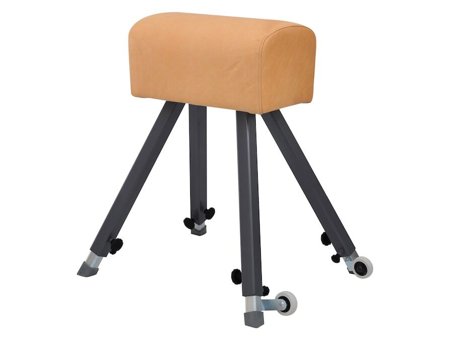 Stillanlegur hæðarbukki sem hægt er að stilla á frá 90 – 140 cm með 5 sentímetra millibili. Virkilega góður og fallegur fimleikabukki með gervileðuráklæði og sterkum stálfótum. Á tveimur fótunum eru hjól fyrir auðveldan flutning. Framleitt samkvæmt EN 12196 og 913.