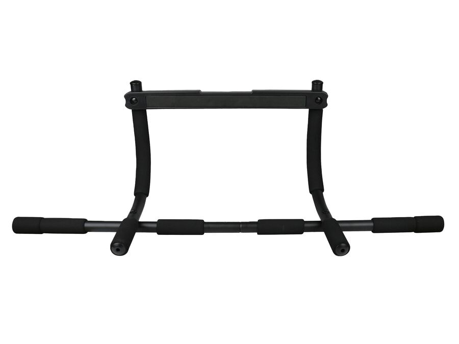 Með þessari höku-/pull-up stöng geturðu notað eigin líkamsþyngd til að þjálfa flesta vöðva líkamans. Þjálfaðu bringu, bak, axlir, maga, háls og handleggi með einföldum „lyftingar“ æfingum. Með þessari höku-/pull-up stöng geturðu notað eigin líkamsþyngd til að þjálfa allan efri hluta líkamans. Þjálfaðu bringu, bak, axlir, handleggi og maga með einföldum lyftingaræfingum, þar sem þú stillir álagið sjálfur. Pull-up stöngin hefur nokkra gripmöguleika og er búin froðuhandföngum, sem veita öruggt og þægilegt grip meðan á æfingum stendur. Hún er auðveldlega fest í hurðarkarm með breidd á milli 60 og 80 cm og þykkt ramma á milli 15 og 18 cm. Einnig er hægt að nota hana á gólfinu fyrir armbeygjur, sitjandi og dýfur.