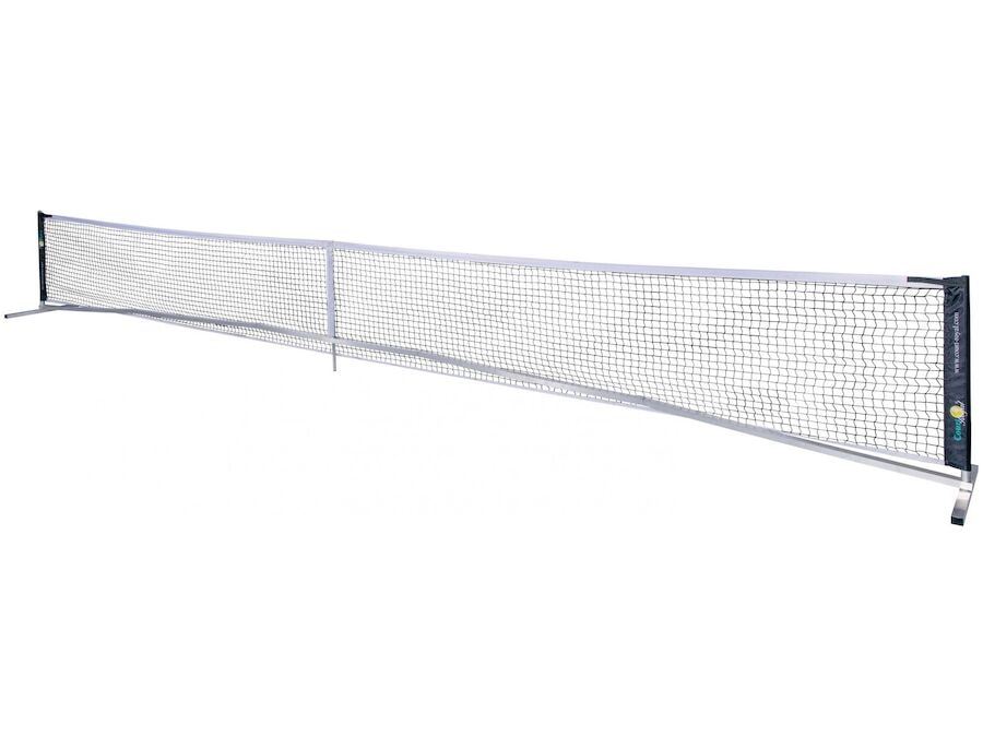 Snjallt og stöðugt netkerfi fyrir súrsuðukeppni. Hágæða álprófílar og breiðir fætur veita mjög mikið stöðugleika og netspennukerfið tryggir bestu mögulegu netspennu. Á sama tíma er fyrirfram ákveðin nethæð tryggð með meðfylgjandi miðjustöng. Netkerfið er fljótlegt að setja upp fyrir einn súrsuðukeppnileik. Með þyngd aðeins 6,8 kg er það auðvelt að flytja. Netkerfið samanstendur af fimm tengieiningum sem auðvelt er að setja saman. Að auki eru tveir netstólpar festir við fæturna. Netkerfið fylgir með súrsuðukeppni. Súrsuðukeppnikerfið frá Court Royal uppfyllir allar kröfur USAPA og DPB.
