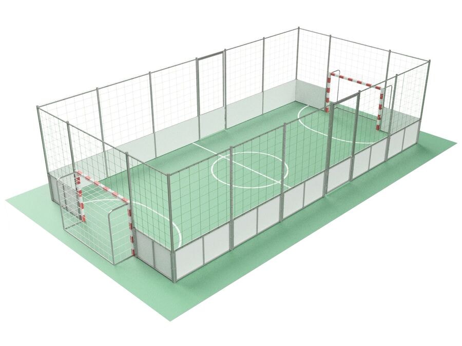 Skapaðu skemmtilega og örugga fótboltaupplifun með færanlegum fótboltavelli sem er 11×5,5 m. Þessi sveigjanlega lausn gerir kleift að setja upp sterkan og endingargóðan völl fljótt – án þess að þörf sé á föstum uppsetningum. Þessi færanlegi smávöllur sem er 11×5,5 m er kjörin lausn fyrir þá sem vilja bjóða upp á sveigjanlegan fótboltavöll með miklu öryggi. Verndunarvellir vallarins, 90 cm háir, eru úr sterkum stálgrindum með 10 mm þykkum pólýetýlenplötum. Þetta tryggir endingu og þol gegn mikilli notkun, sem gerir völlinn hentugan fyrir daglegar athafnir og stærri viðburði. Verndarnetið, úr 4 mm pólýetýleni með möskvastærð 10×10 cm, er fest á 300 cm háa stálstaura sem halda boltanum innan vallarins á áhrifaríkan hátt og auka öryggi bæði leikmanna og áhorfenda. Völlurinn er í boði með ýmsum festingarmöguleikum, þar á meðal festingu á undirstöðu eða með færanlegum mótvægi. Þetta