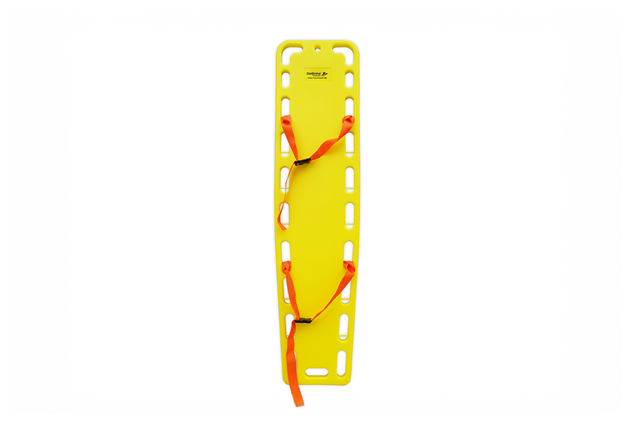 Stíf fljótandi flugvél með beltum. Búnaður til að flytja sjúklinga í sjúkrabílum, sjúkrahúsum, íþróttahúsum o.s.frv., án þess að þeir hljóti ný meiðsli. Hægt að nota með höfuðkýlislæsingu. Samþykkt samkvæmt CE stöðlum.