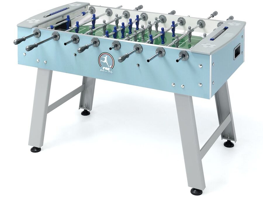 Útiborðfótboltaspil frá ítalska FAS. Sterkt og veðurþolið fótboltaspil í alþjóðlegri stærð með sjónaukastöngum og sterkum stálfótum. Kemur með 5 borðfótboltakúlum og regnhlíf. Meðfylgjandi regnhlíf ætti alltaf að nota þegar spilið er ekki í notkun, og við mælum einnig með að borðið sé sett undir hálfþak eða svipað svo að það fái ekki beina rigningu, raka og snjó.