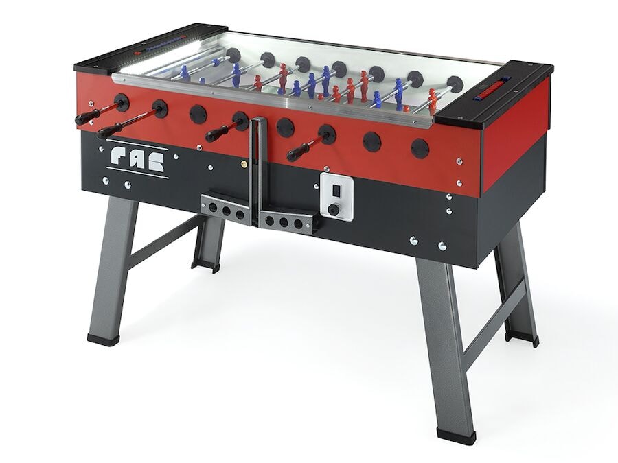 San Siro er eitt vinsælasta borðfótboltaspilið frá ítalska FAS. Þetta fagmannlega borð er í alþjóðlegri stærð og kemur með sjónaukastöngum, hertu gleri og LED lýsingu. Glerhlífin dregur úr hávaða og verndar kúlurnar. Afhent að hluta og með kúlum. San Siro er stílhreint og fagmannlegt borðfótboltaborð frá ítalska FAS, tilvalið bæði fyrir skemmtilega og félagslega vináttuleiki sem og alvarlega mótaleiki. Borðið er með sterkri smíði með 27 mm lagskiptu skápi og kringlóttum málmfótum (Ø 70 mm) með rispuþolinni húðun, sem tryggir langa endingu. Leikflöturinn er úr 5 mm hertu gleri með skásettum hornum sem halda kúlunni í leik og veita hraða og mjúka leikupplifun. Herta glerhlífin virkar sem vörn, dregur úr hávaða og kemur í veg fyrir að kúlurnar hverfi. Lokað kúlukastkerfi heldur kúlunum saman og tryggir hraða og stöðuga sendingu. Borðið er búið sjónaukastöngum sem auka öryggi og bæta