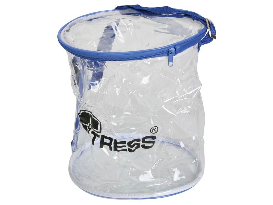 Samanbrjótanleg, gegnsæ geymslutaska með rennilásloki og stillanlegri burðaról. Tilvalin til að geyma litla hluti eins og baunasekki, borðtennisbolta og hoppreipi. Hagnýt geymslutaska með hæð 25 cm og þvermál 21 cm. Taskan er með gegnsæju hönnun, þannig að auðvelt er að sjá innihaldið ef þú ert með nokkra á sama stað. Renniláslok og stillanleg burðaról gera það auðvelt að flytja og halda utan um minni hluti. Samanbrjótanleg hönnun tryggir að það tekur lágmarks pláss þegar það er ekki í notkun. Tilvalin fyrir allt frá boltum og hoppreipi til annarra lítilla verkfæra.