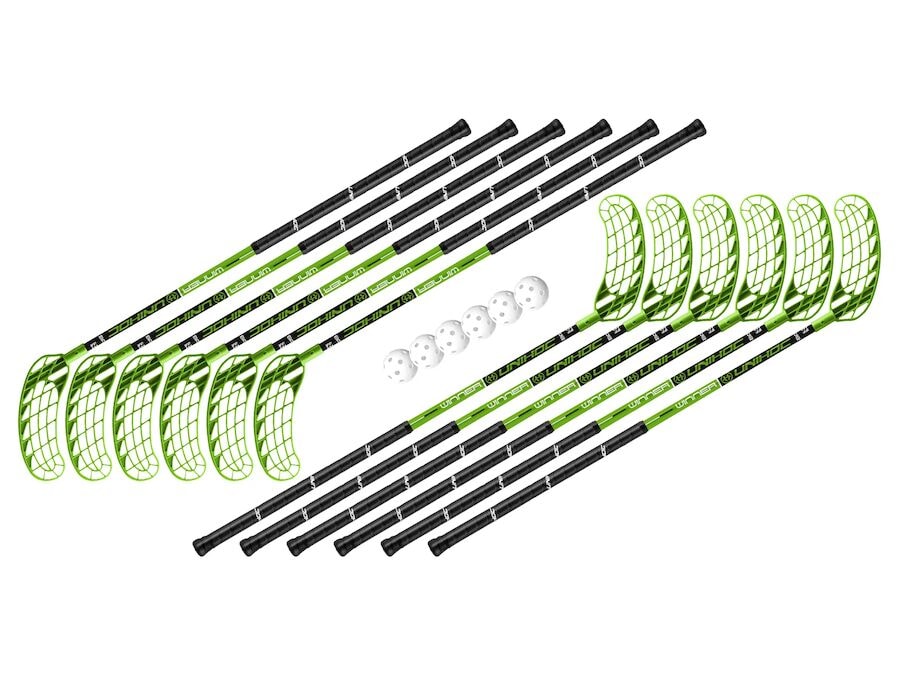 Innifalssett Unihoc Winner 87 cm IFF, 12 kylfur og 6 boltar