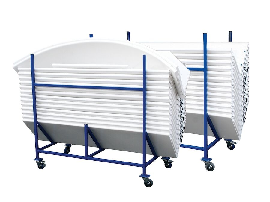 Settið samanstendur af: 52 beinar bönd H: 50 L: 200 cm. 4 stykki. borði H: 50 L: 100 cm. 4 hornbönd H: 50 cm. og 2 stk. flutningavagna til geymslu. Hljómsveitirnar eru steyptar í trefjagleri og eru tengdar með gúmmíólum. 20 x 40 mtr. = int. stærð