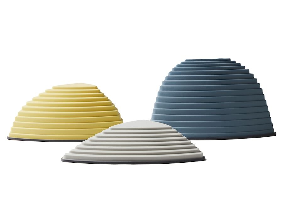 blágráum 43x43x26 cm, gulum 41x41x17 cm og ljósgráum 38x37x8,5 cm (L:B:H).