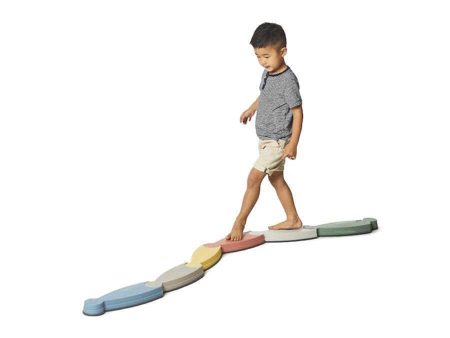 Gonge River Nordic samanstendur af 6 árfljótseiningum og 1 tengieiningu. Þessar „stigplötur“ er hægt að setja saman á nokkra vegu og skapa skemmtilegar jafnvægisáskoranir fyrir börn. Gonge River Nordic er frábært til að þróa grófhreyfifærni, jafnvægi og einbeitingu barna. Gonge River Nordic er hagkvæmt að sameina nokkrum eða fleiri Gonge jafnvægiseiningum og saman bjóða þau upp á ótal samsetningarmöguleika til að byggja upp skemmtilega og krefjandi jafnvægisbrautir. Einingarnar eru hannaðar þannig að jafnvel mjög ung börn geti tekið þátt. Þær eru með hálkuvörn og hægt er að stafla þeim þannig að þær taka takmarkað geymslurými.