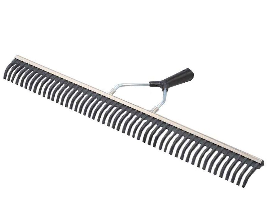Tennisvallarhrífa úr gúmmíi, til að fjarlægja lauf, gróður og úrgang á tennisvöllunum. Fylgir án tréhandfangs (Ø 28 mm). Veldu á milli 50 og 75 cm á breidd.