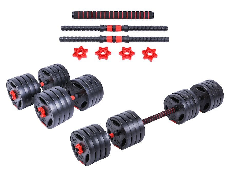 Samsett handlóð og stöngsett frá Pure2Improve. Með skiptanlegum lóðaplötum og skrúfuðum stöngum er auðvelt að skipta á milli handlóða og stöng. Tilvalið fyrir fjölhæfa styrkþjálfun fyrir efri hluta líkamans og vöðvaþol. Þetta heildstæða styrkþjálfunarsett frá Pure2Improve gerir kleift að þjálfa bæði handlóð og stöng í einu sveigjanlegu kerfi. Með skrúfuðum stöngum og skiptanlegum lóðaplötum er hægt að aðlaga settið fljótt að mismunandi æfingum og álagsstigum. Meðfylgjandi lóðaplötur (16 stk. með 2,5 kg fyrir 40 kg útgáfuna) er hægt að skipta út eftir þörfum. Handföngin eru með hálku- og svitavörn fyrir betri þægindi og stjórn meðan á æfingum stendur. Settið er tilvalið til að styrkja efri hluta líkamans, vöðvamassa og þol.