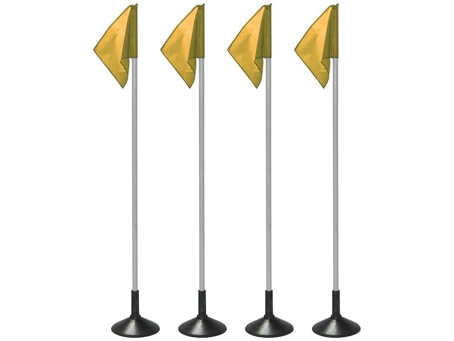 Sett með 4 hornfánum á gúmmífótum. Einföld og fljótleg lausn fyrir gervigrasvöllinn. Hornstöngur úr brotþolnu hvítu plasti með 30 mm þvermál. Gúmmífótur sem vegur 3,4 kg, stendur stöðugt á grasinu. Veldu á milli 4 fánalita.