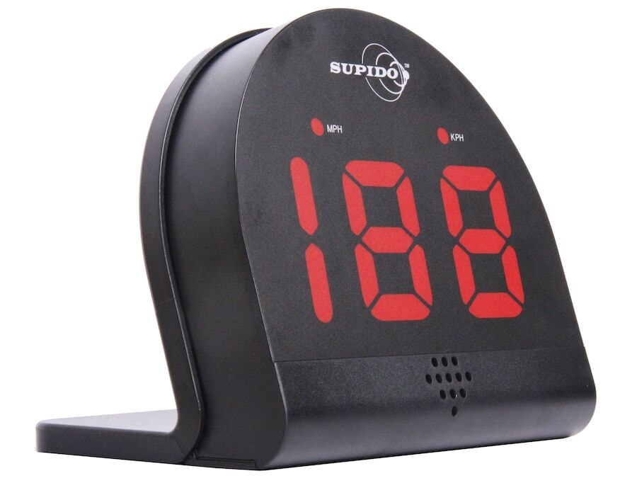Hraðamælir sem mælir allt að 199 km/klst. Hægt að nota í handbolta, fótbolta, íshokkí, golf og tennis. Radíus 1-12 metrar. Rafhlaðuknúin. Fylgir án rafhlöðu (5 x AA)
