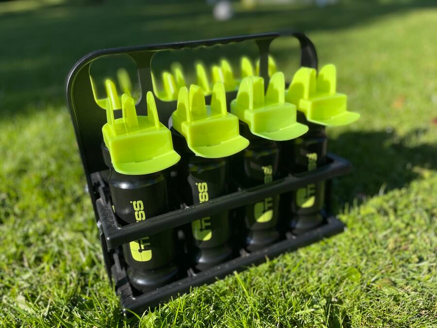 Hygienic Team drykkjarflöskur 1L, 8 stk., með haldara fyrir 8 flöskur