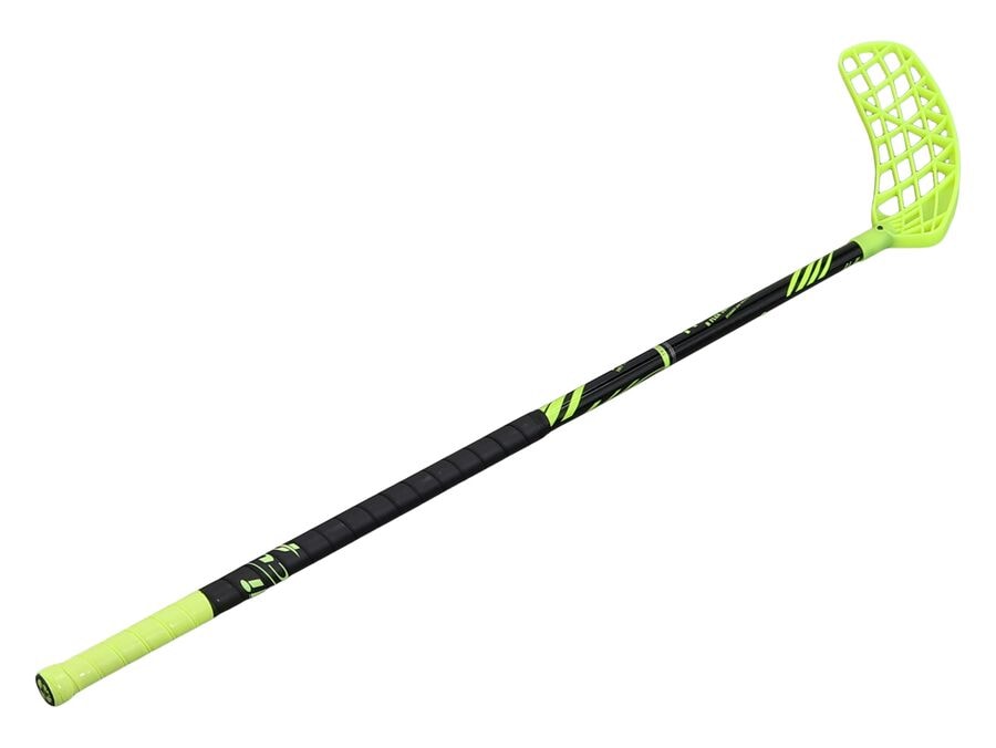 Sterkur og léttur innerboltakylfa með 90 cm samsettu skafti og höggþolnu PE blaði. Hentar byrjendum og reyndum leikmönnum. Fáanlegur sem hægri- eða vinstrihandar kylfa. Þessi innerboltakylfa með 90 cm skafti er þróuð fyrir unga og reynda leikmenn sem vilja stöðugan og vel jafnvægan kylfu fyrir æfingar og leiki. Skaftið er úr léttum samsettum efnum sem veitir gott jafnvægi og þægindi í leik. Gripið er traust og veitir örugga stjórn á boltanum. Blaðið er úr höggþolnu PE með miðlungs íhvolfi, forkrók og stækkað skotsvæði sem bætir boltastjórn og nákvæmni. Kylfan hentar vel til notkunar í skólum og öðru umhverfi með mikilli notkun. Upplýsingar: • Stönglengd: 90 cm • Skaftbeygja: 30 mm • Blaðlengd: 260 mm • Ráðlögð hæð notenda: 155 – 175 cm Val á stöng: Veldu hægri handar stöng ef þú heldur vinstri hendi ofan á og hægri hönd næst blaðinu – boltinn er hægra megin þegar þú skýtur. Veldu vinstri handar stöng ef þú heldur hægri hendi