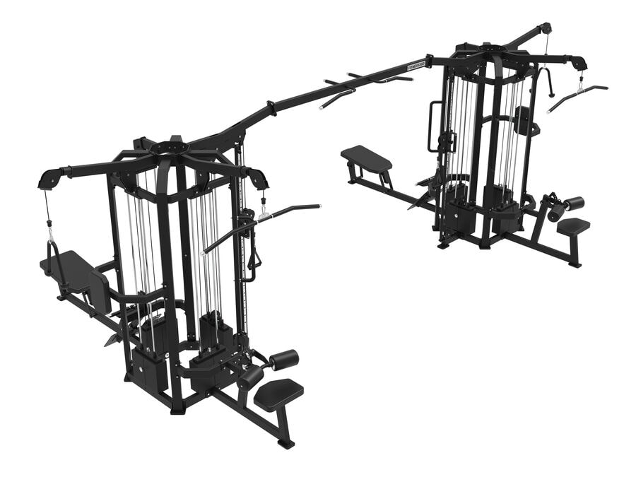Cable Station 8 býður upp á alhliða þjálfun með átta kapalstöðvum, tilvalið fyrir bæði styrktar- og virkniþjálfun í stærri æfingaumhverfi. Cable Station 8 gerir kleift að framkvæma margar mismunandi æfingar með stillanlegum handföngum og fylgihlutum. Hægt er að stilla togkraftinn í nokkrar hæðir og föst handföng eru efst fyrir æfingar með líkamsþyngd. Stöðin samanstendur af 2 Lat Pulldown, 2 Low Row, 2 Pull from Top/Bottom og 2 Cable Pull (Crossover). Serían er þróuð til notkunar í atvinnuskyni, fullkomin fyrir líkamsræktarstöðvar, skóla og fyrirtæki. Handföng/tog eins og sýnt er á myndunum fylgja með. Stöðin samanstendur af: • 4 x 100 kg lóðatímaritum (Lat Pulldown + Low Row) • 4 x 70 kg lóðatímaritum (Tríhöfðar/Bíhöfðar + Crossover) Athugið: Þessi vél þarfnast uppsetningar og undirbúnings af uppsetningarmanni okkar beint á staðnum. Ekki er hægt að undirbúa hana eða setja saman fyrir afhendingu. Við munum hafa samband við þig varðandi verð og frekari fyrirkomulag.