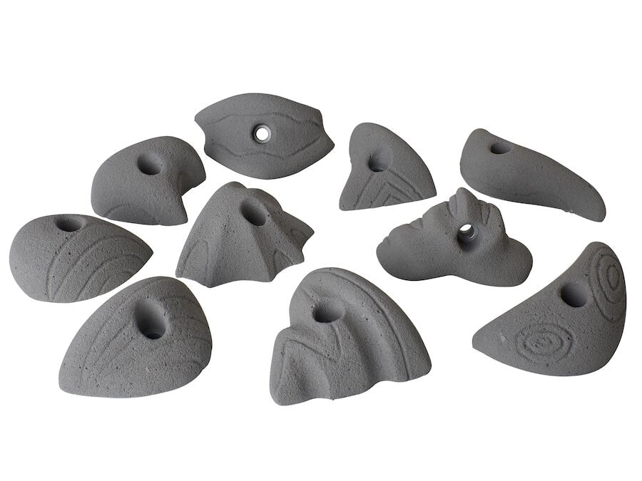 Masai er ætlað börnum og byrjendum. Góð og traust grip í mismunandi útfærslum. Settið samanstendur af 10 klifurgripum í gráum lit og fylgir án bolta til festingar. Gripin eru framleidd samkvæmt EN 1176.