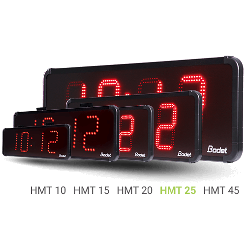 Stafræn HMT LED 25 klukka frá franska framleiðandanum Bodet.