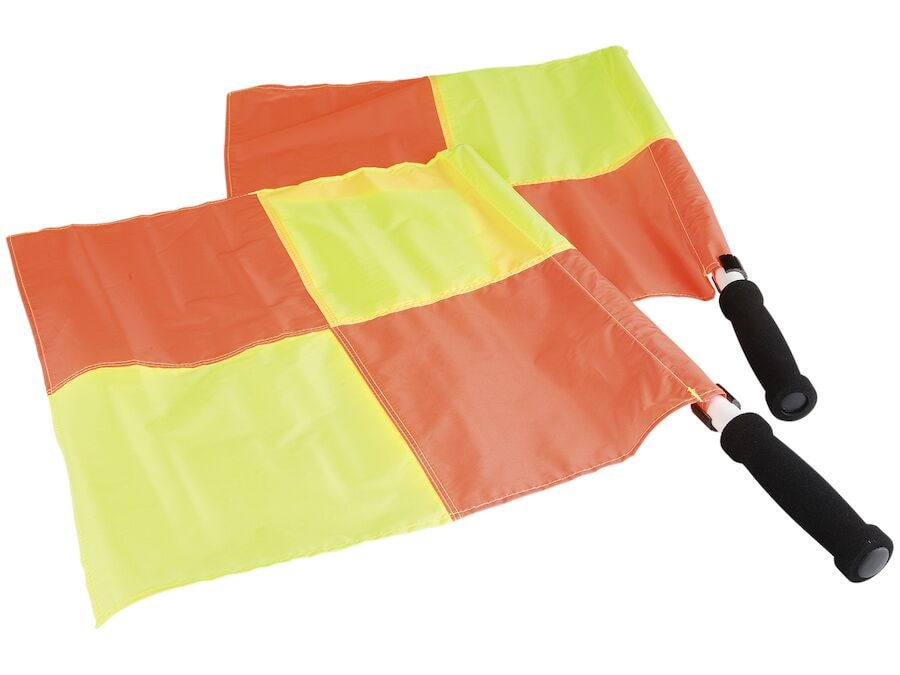 Faglegir línudómarafánar með þægilegum handföngum. Glæru gulu og appelsínugulu fánarnir eru 45 x 45 cm að stærð. Kemur í poka með tveimur línudómarafánum.