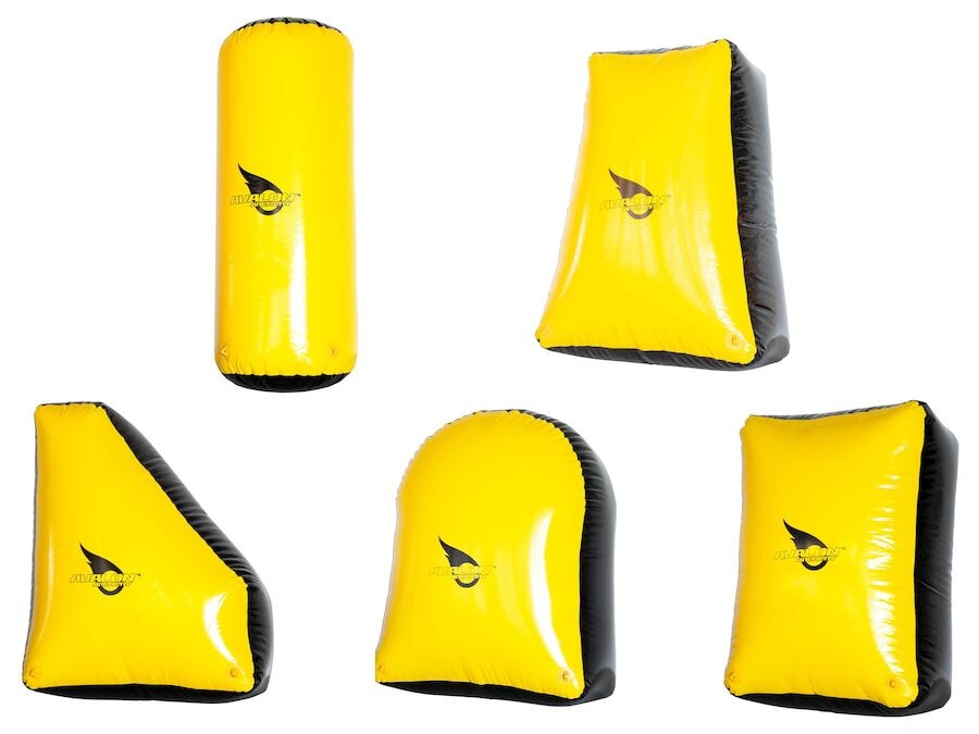 Loftbyrgi í bardagabogfimi eru uppblásnar hindranir sem auka erfiðleikastig og taktískt atriði í bardagabogfimi. Loftpúðarnir geta verið settir upp frjálslega og leyfa þátttakendum að fela sig og leita skjóls fyrir örvaskotum óvinarins. Vegna stærðar sinnar og skýrs gula litar eru loftbyrgi fullkomin viðbót við bardagasvæðið í bogfimi. Mismunandi lögun leyfa þér að byggja upp fjölbreytt bardagasvæði og alltaf að endurraða eftir þörfum. Loftbyrgi í bardagabogfimi eru fljótt blásin upp með þjöppu eða rafmagnsdælu (ekki innifalin). Þau eru auðveld í flutningi. Gefur þátttakendum tækifæri til að leita skjóls og verndar. Gott sem viðbót við aðrar hindranir/felustaði. Þar sem þau eru loftfyllt taka þau lágmarks geymslupláss þegar þau eru ekki í notkun. Gerir þér kleift að búa til einstakt og krefjandi leiksvæði. Veggur á milli nokkurra afbrigða, stærðir eru frá 160 til 190 cm á hæð.