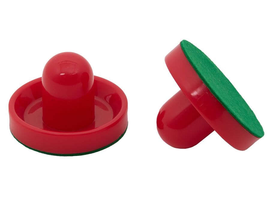 Rauð plasthandföng/ýtar fyrir lofthokkí, með 9,5 cm þvermál. Fæst í pakka með 2 stykkjum. þar með talið filt.