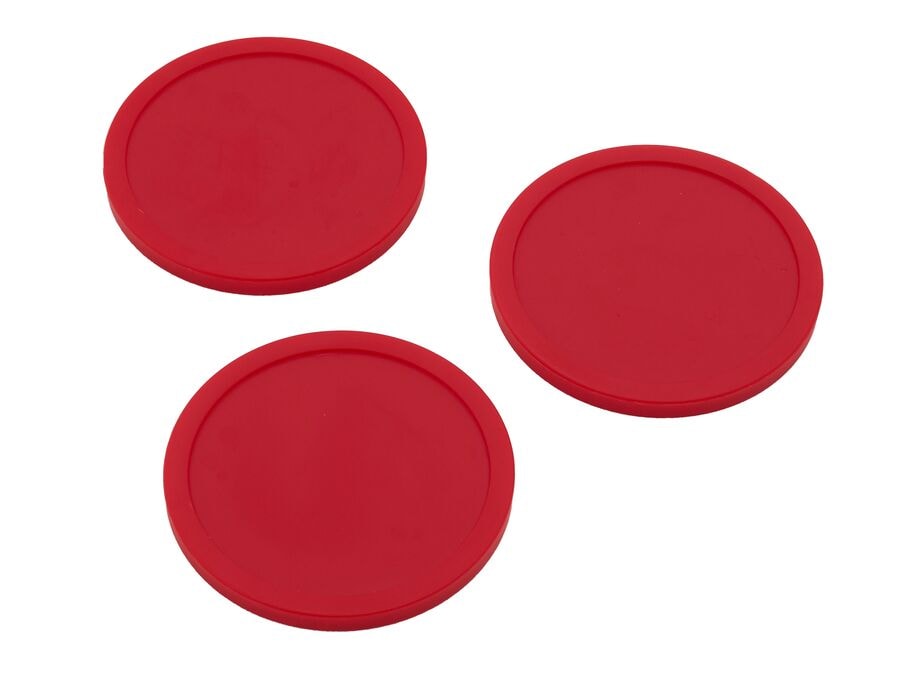 Pakke med 3 stk. røde Airhockey pucks. Diameter 7,5 cm.
