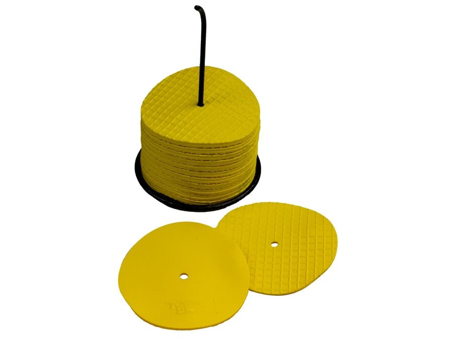 24 flatir merkisdiskar úr sveigjanlegu vínyl með rennandi undirhlið. Hentar fyrir fótboltaæfingar bæði innandyra og utandyra. Kemur með geymslustandi. Þetta sett inniheldur 24 gula merkisdiska úr sveigjanlegu vínyl með 10 cm þvermáli. Þeir eru hannaðir til að afmarka nákvæmlega svæði á vellinum og hafa ekki áhrif á snúning eða stefnu boltans meðan á leik stendur. Rennandi undirhliðin tryggir stöðuga staðsetningu bæði innandyra og utandyra. Diskarnir eru nógu sterkir til að stíga á þá með fótboltaskóum og aflagast ekki við álag, sem gerir þá tilvalda fyrir tæknilegar æfingar og hraðakstur. Flatir diskarnir veita hreyfifrelsi og hægt er að nota þá í allt frá upphitun til stöðuæfinga og sendingarleikja. Kemur með standi og geymslutösku fyrir auðvelda meðhöndlun og flutning.