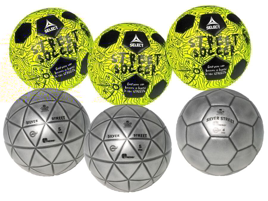 Hið fullkomna boltasett fyrir skólalóðina, fjölnotavöllinn, boltahöllina eða aðra staði með hörðu yfirborði eins og malbiki og þess háttar. Settið inniheldur 6 endingargóða fótbolta sem henta til að spila á hörðu yfirborði. Inniheldur: • 3 stk. Select Street Soccer fótbolta í stærð 4,5 • 2 stk. Trial Ultima götubolta í stærð 5 • 1 stk. Trial Ultima götubolta í stærð 4 Athugið: Hönnun boltanna getur verið frábrugðin myndinni sem sýnd er.