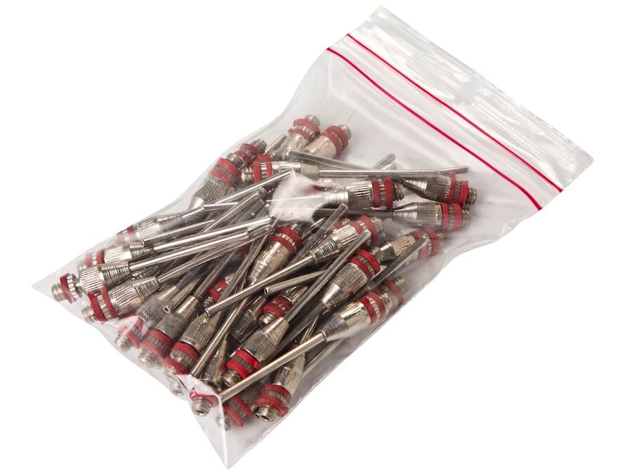Nálarnippel úr málmi. Poki með 50 stykkjum. Alhliða nippel sem passar í flestar boltadælur. Fyrir félög, skóla og stofnanir með marga bolta og marga notendur.