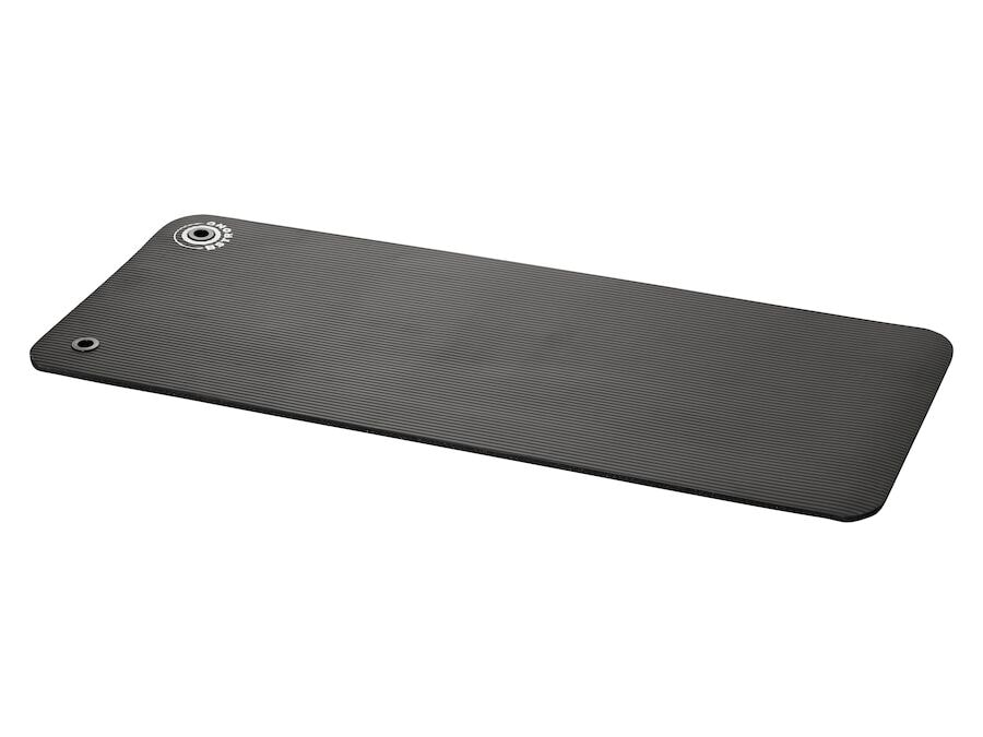 B-Strong æfingadýna með upphengingargötum. Þægileg mjúk dýna sem hentar fullkomlega fyrir bakæfingar, magaæfingar og aðrar gólfæfingar. NBR æfingadýnan er svört og er 120 cm löng, 50 cm breið og 1 cm þykk. B-Strong æfingadýnan er úr mjúku og höggdeyfandi NBR froðuefni sem tryggir hámarks þægindi á gólfinu. Auðvelt er að þurrka hana með klút og auðvelt er að brjóta hana út og rúlla henni upp aftur. Í öðrum endanum er æfingadýnan búin tveimur upphengingaraugum svo hægt sé að hengja hana á veggfestingu. Plásssparandi lausn sem er sérstaklega gagnleg í æfingasalum þar sem eru venjulega margar dýnur.