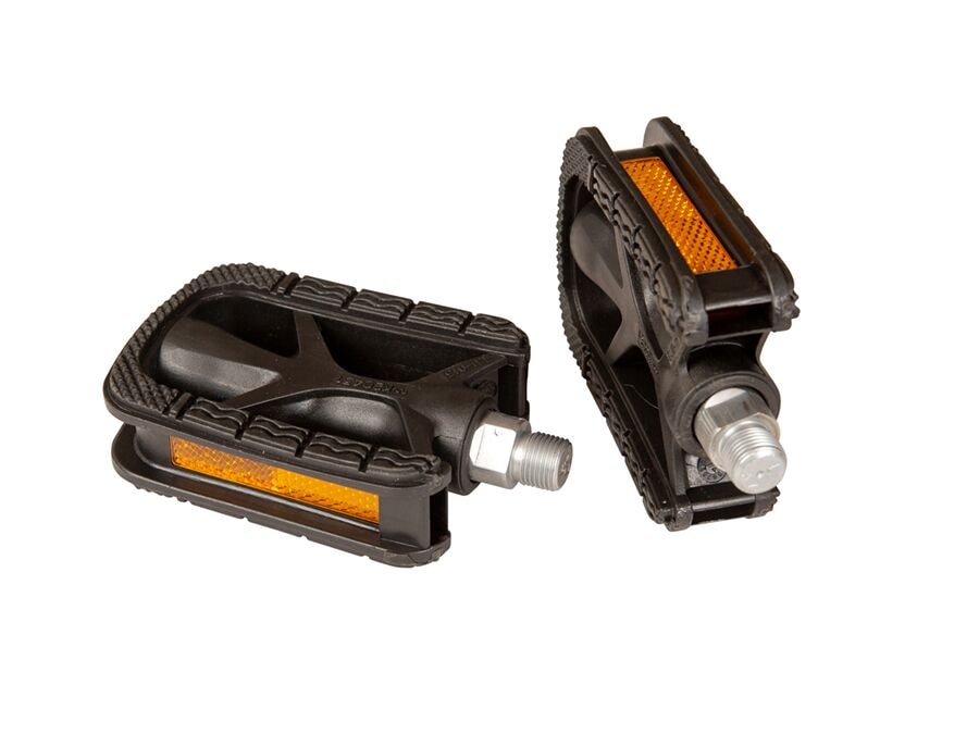 Varapedalar fyrir Funracer, Vältepeter og Chili-bike. Hálkugjörn yfirborð og venjuleg skrúfgangur fyrir auðvelda uppsetningu. Hægt að nota á bæði hægri og vinstri sveifararm. Fæst sem par.