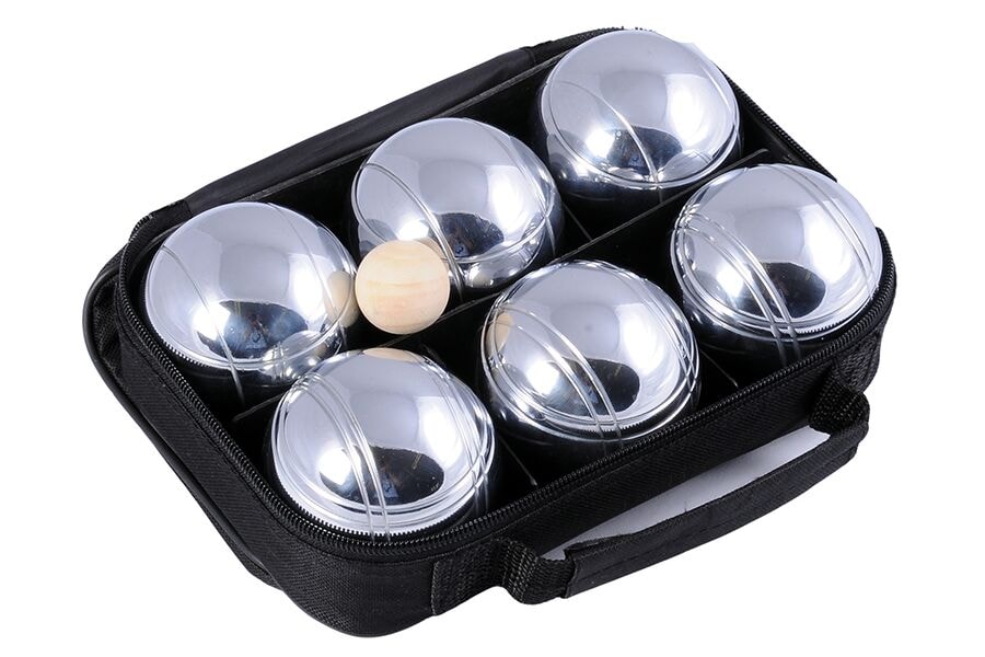 Petanque-sett með 6 boltum. Kemur í handhægum nylonpoka.
