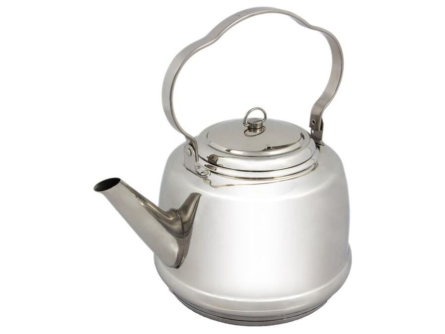 Petromax teketill úr ryðfríu stáli sjóðar vatn bæði yfir eldi og á helluborði. Fjarlægjanlegt handfang gerir hann auðveldan í meðförum og marglaga botninn tryggir jafna hitadreifingu. Ketillinn rúmar 1,5 lítra, er 15 cm á hæð og 13,5 cm í þvermál. Með aðeins 630 grömmum í þyngd er hann léttur og hentugur til notkunar bæði úti og inni.