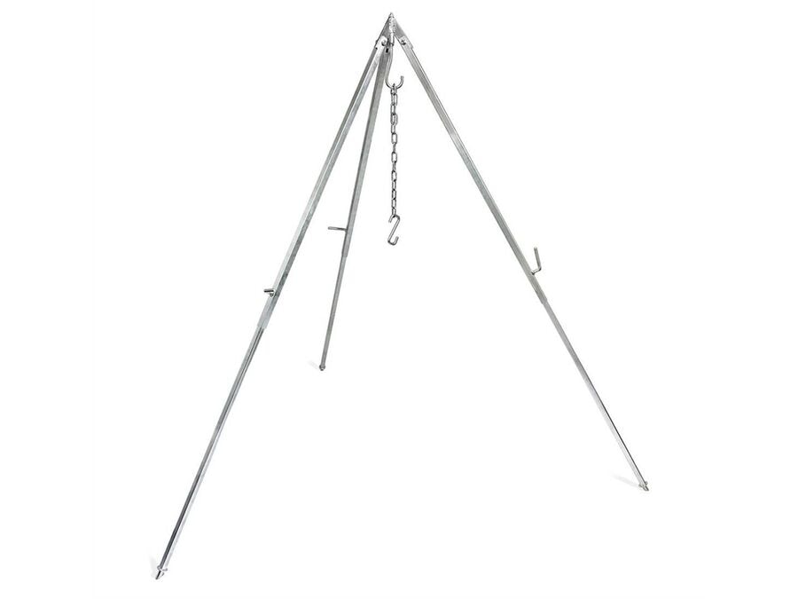 Petromax eldunarþrífóturinn er stöðugur standur fyrir útieldun yfir varðeldi, fullkominn til að hengja potta og katla í mismunandi hæð. Stillanlegt keðjukerfi auðveldar að stilla hæðina yfir eldinum og þrír fætur tryggja örugga stöðu á ójöfnu yfirborði. Þrífóturinn er úr sterku stáli og getur borið allt að 40 kg, sem gerir hann tilvalinn fyrir þyngri eldhúsáhöld.