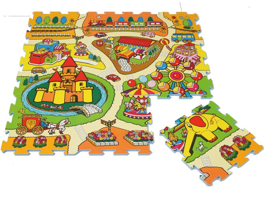 Mjúkt gólf með leiksvæðisþema sem gerir það skemmtilegt fyrir börn að leika sér á. Mjúka gólfið gerir gólfið hlýrra og þægilegra þegar börn leika sér á því. En það er líka notað frekar sem örugg fallvörn í hreyfifærniherbergi, í ganginum eða heima. Þetta mjúka gólf hefur verið vandlega valið vegna sterkrar samsetningar gæða og léttleika. Það er ótrúlega fljótlegt og auðvelt að færa eða setja saman þessar mjúku mottur í froðugólf með þéttum samskeytum.