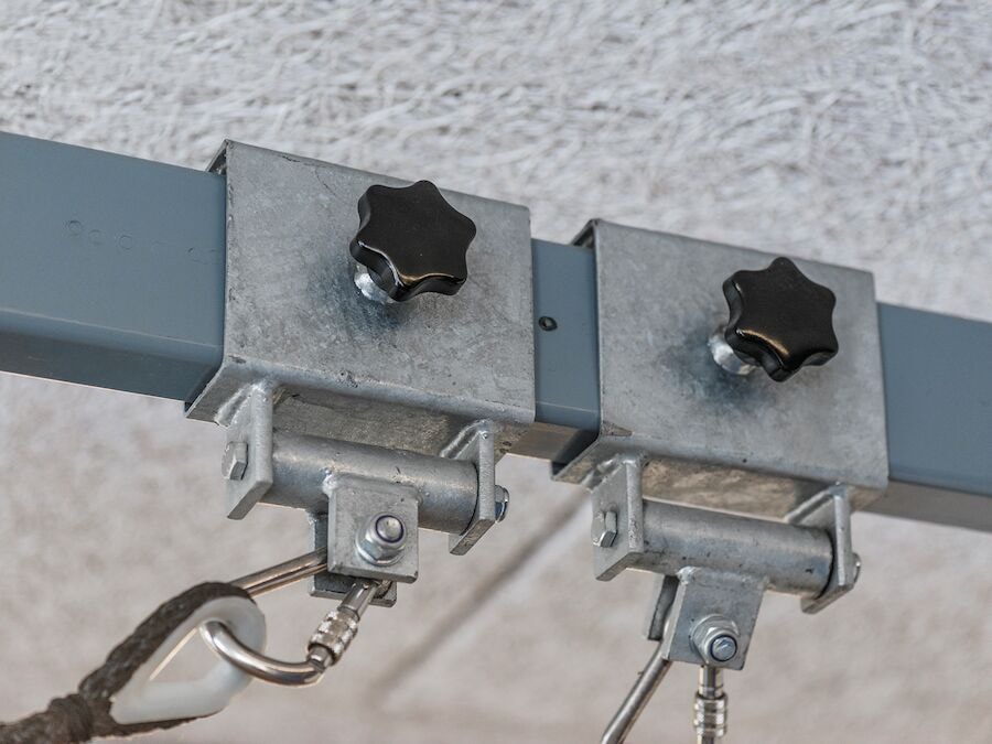 Skydebeslaget monteres på eksisterende motorikskinne, så diverse gynge, klatre og balanceredskaber kan kobles på. Passer til RHS profil 50 x 100 mm.