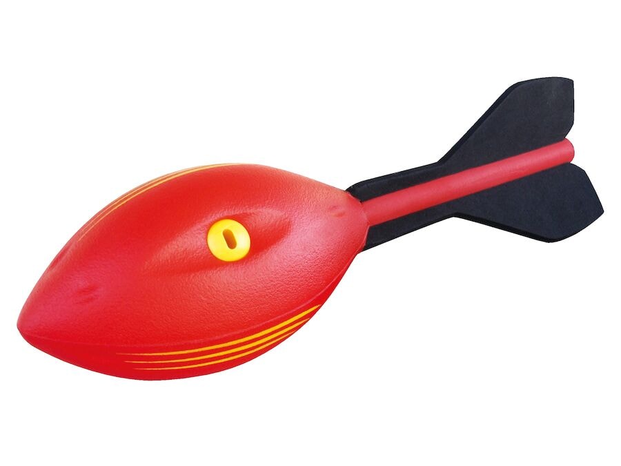 Rocket Whistler er skemmtilegur kast-/gripbolti sem hefur notið mikilla vinsælda um allan heim. Þessi risaflaut er kastað eins og amerískur fótbolti og flýgur fallega og nákvæmlega um loftið á meðan hann gefur frá sér ýlfrandi hljóð, þökk sé þremur innbyggðum flautum. Halinn tryggir beina fluglínu og sterka sérstaka froðan sem kastboltinn er úr er auðvelt að grípa fyrir alla, og þess vegna er hann fullkominn til að bæta kast-/gripfærni sína.