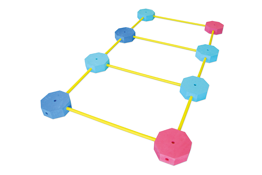 Samansettur úr 8 „Golfoam“ áttahyrningum, 4 PVC rörum (100 cm) og 6 PVC rörum (65 cm). Ýmsir möguleikar á samsetningu.