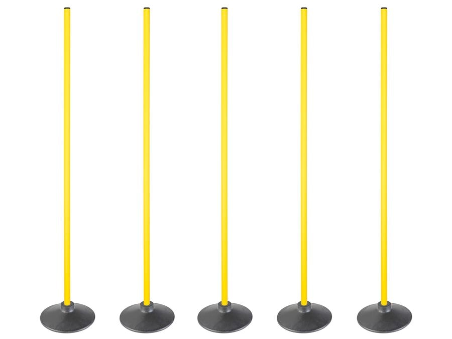 Slalomstangir með gúmmífóti 160 cm, 5 stk. Sett með 5 stk. fyrir innandyra/gervigras