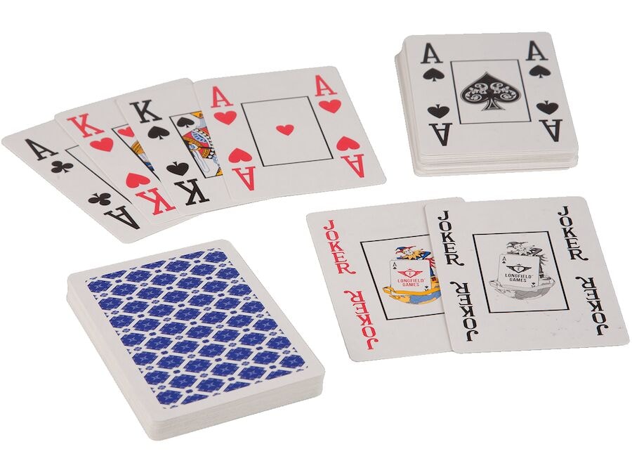 Longfield eldri spilakort með stórum tölum og táknum, hentug fyrir sjónskerta. Með sterku lagskiptu efni endist þetta spilakortasett lengur en venjuleg spilakort.