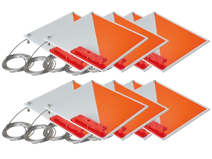Pakki með 10 ratleikjaskjám, þar á meðal klemmur af B-seríu og vír til festingar. Ratleikjaskjáirnir eru úr trefjaplasti, sem veitir hámarks endingu og gerir skemmdarverk erfitt. Skjáirnir eru veðurþolnir og auðveldir í uppsetningu. Appelsínuguli og hvíti ratleikjaskjárinn, 20 x 20 cm, er auðvelt að koma auga á í ratleiknum.