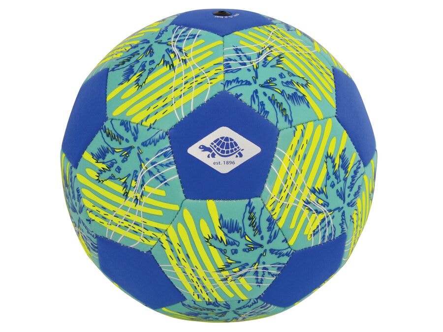 Strandfótbolti. Neoprene er mjúkur bolti með þægilegu yfirborði sem er milt við húðina. Hentar til leiks á ströndinni og í vatni. Kemur í ýmsum litum. Stærð 5. Strandfótbolti. Neoprene er léttur og þægilegur bolti fyrir strand- og vatnsíþróttir. Mjúka neopren yfirborðið veitir góða tilfinningu fyrir boltanum og dregur úr hættu á húðertingu þegar leikið er án skófatnaðar. Boltinn er vatnsfráhrindandi og þolir saltvatn, sem gerir hann tilvaldan til notkunar utandyra í sumarstarfsemi og æfingaumhverfi. Neoprene efnið gerir boltann óhentugan til leiks á hörðum undirlögum eins og malbiki og steypu. Stærðin samsvarar venjulegum fótbolta í stærð 5 (Ø 21 cm). Boltinn kemur í ýmsum litum.