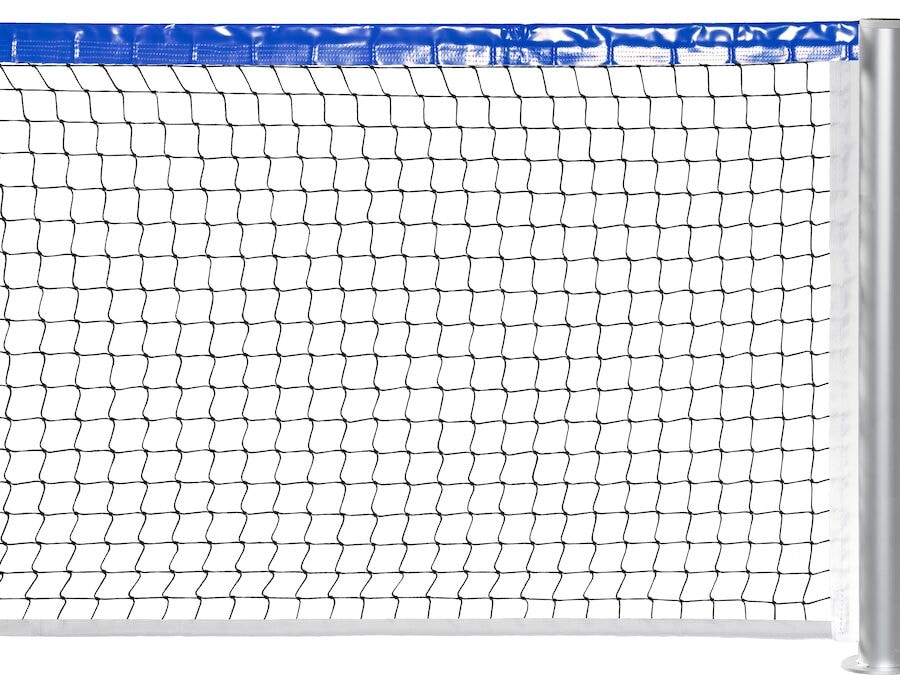 Súrsunarnet úr 2 mm svörtu nylon með 45 mm möskva. Netið er með bláum efri brún úr PVC. Kevlar vír í efri brún netsins + 1,5 metrar til spennu. Brotinn neðri brún í hvítu. 10 mm netrif á hliðunum, sem passa í Ø: 83 mm súrsunarkúlufestingar fyrir hálft gólf.