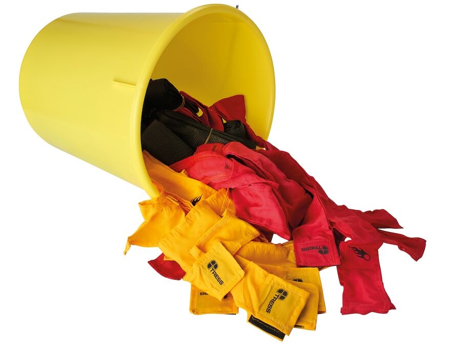 Tilvalin pakki fyrir ýmsa leiki þar sem boltinn er gripinn og fyrir fánafótbolta. Settið inniheldur belti fyrir 12 gula leikmenn og 12 rauða leikmenn. Pakkað í handhægum geymslukassa.
