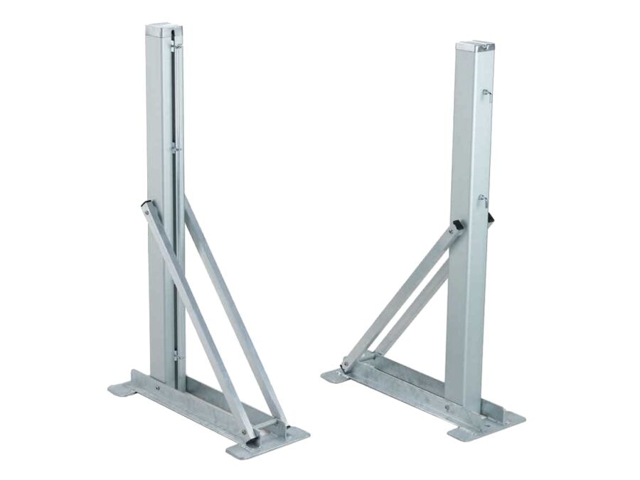 Tennisstuðningar frá Court Royal eru notaðir þar sem engin gólfdýpt er til að fella inn hylsingar. Stuðningarnar eru festar ofan á gólfið með töppum og skrúfum. Tennisstuðningarnar eru úr 80 x 80 mm álprófíl með innri styrkingu og tveimur ytri festingum fyrir aukinn stöðugleika. Festingarfæturnir eru úr sterkum, heilsuðuðum stálfestingum. Netið er auðvelt að spenna á milli stólpanna tveggja með innra spennukerfi. Tennisnet og festingarhlutir fylgja ekki með. Fæst í pörum.