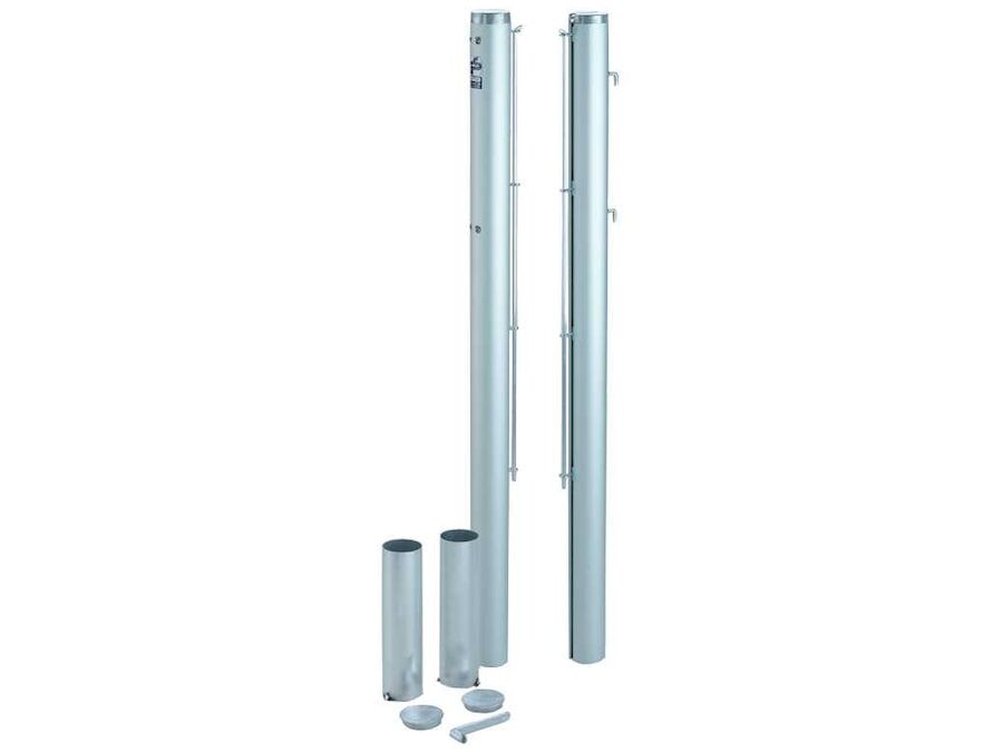 Tennisstuðningar úr áli til notkunar innandyra og utandyra. Tennisstuðningarnar eru úr sterku áli og eru silfuranodiseraðar. Þær eru 83 mm í þvermál og eru með innbyggðum netgróp og lyftistöngum fyrir auðvelda og fljótlega festingu tennisnetsins. Stuðningarnar eru framleiddar samkvæmt ITF reglum og eru GS prófaðar. Þar að auki eru þær framleiddar samkvæmt DIN EN 150 staðlinum. Tennisnet fylgir ekki með.
